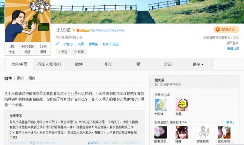 國民老公王思聰微博公開黑小米:抄襲都能抄出優越感