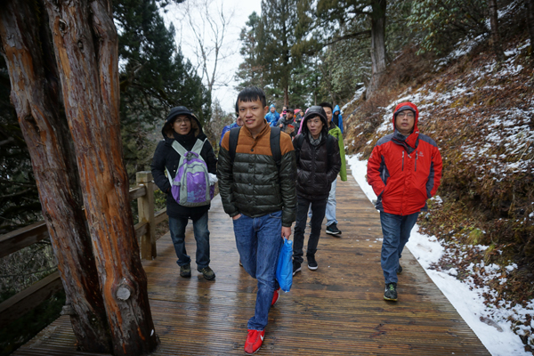 剛到五彩池,小冰粒一樣的雪就紛紛揚(yáng)揚(yáng)開始下了
