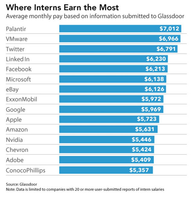 硅谷實習生月薪曝光:Facebook 6213美元,蘋果9223美元