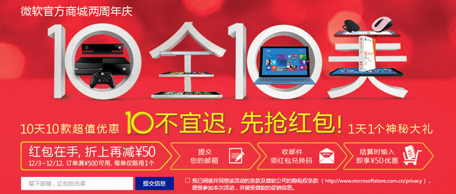 微軟中國(guó)官方商城迎來(lái)兩周年慶,從12月3日至12日,微軟中國(guó)官方商城將攜手天貓微軟中國(guó)官方旗艦店共同為用戶傾情奉上一場(chǎng)持續(xù)十天的感恩大狂歡,年度勁爆超值豪禮,不容錯(cuò)過。