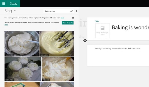 微軟今早宣布了一項Sway中的新功能,那就是內(nèi)嵌的必應圖像搜索功能,以便于用戶輕松創(chuàng)建內(nèi)容。不僅如此,該公司還利用到了機器學習技術,使得相關圖像的搜索速度更快。目前Sway仍處于預覽階段,該平臺正在演變,并且會在完成之后,于Office套件中扮演一個全新的角色。