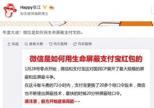 以下為網友整理的《微信是如何用生命屏蔽支付寶紅包的》全文: