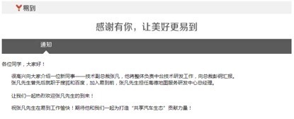 10月31日,易到官方宣布,高德地圖服務研發中心總經理張凡加盟易到,擔任技術副總裁,向總裁彭鋼匯報。